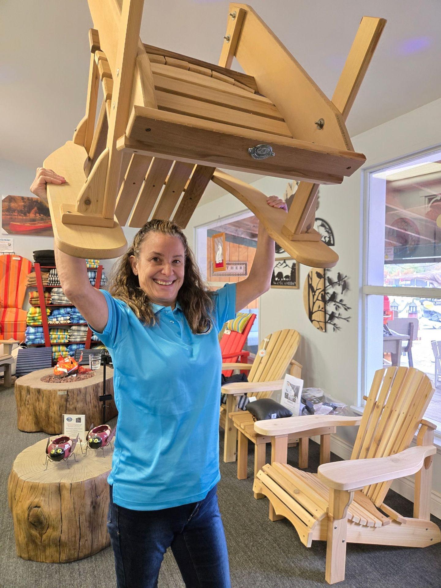Our founder Silvano Marzin and his wife Clara started the business over 27 years ago with his love of wood crafting. He hand-crafted furniture, both indoor and outdoor, and took great pride in creating that "perfect piece". Lumbar and buttock supports for the Muskoka/Adirondack chair were put in the perfect positions to give us "Best Seat in Muskoka" bragging rights.