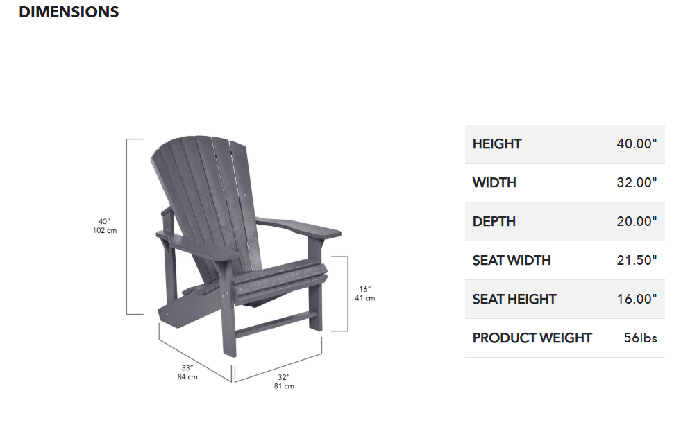 Our Classic Adirondack chair has been ergonomically designed with relaxation in mind. Boasting a reclined back and deep contoured seating, this chair offers maximum comfort for all generations!