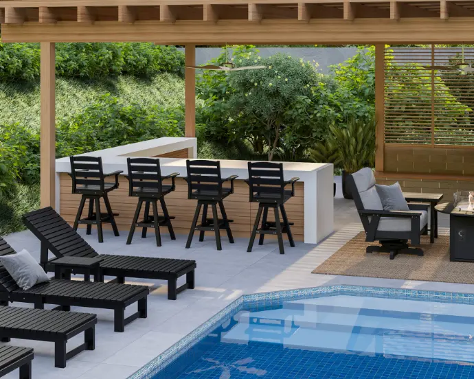 New for the 2026 season, the C312 Napa Swivel Pub Arm Chair offers smooth swivel motion and classic comfort for your elevated outdoor space.